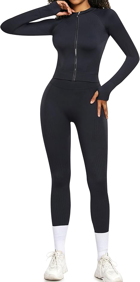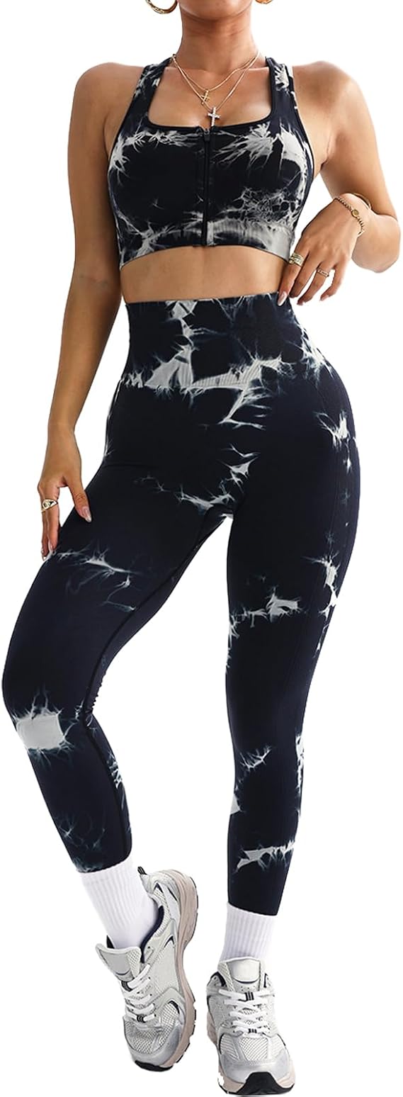 2 Piece Workout Sets for Women Seamless Workout Sets with Zip Bra Butt Lifting Leggings Waist Yoga Leggings Sets