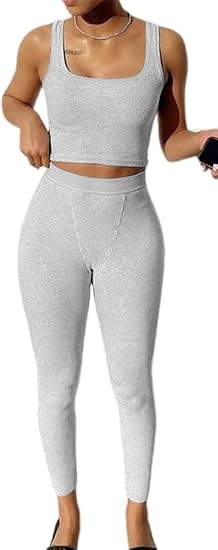 Women's 2 Piece Casual Workout Outfits Ribbed Knitted Yoga Tank Top High Waist Leggings Tracksuit Active Wear Sets