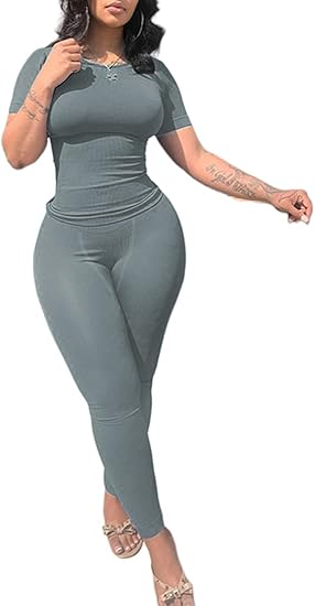 Women Casual Workout Sets 3 Pieces Lounge Wear Yoga Outfits Short Sleeve Ribbed Top Elastic High Waist Leggings