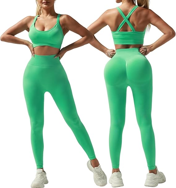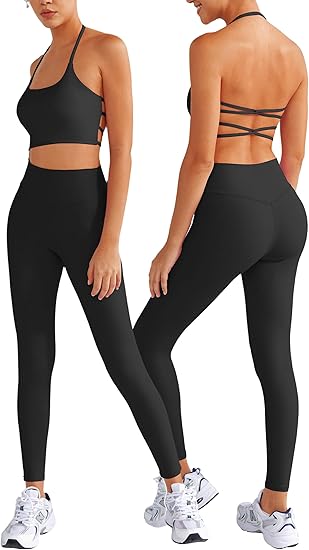 Workout Sets for Women 2 Piece Strappy Crisscross Sports Bra Seamless high Waisted Leggings Yoga Sets Gym Outifits