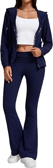 Women's 2-Piece Lounge Outfit-Lightweight Zip-Up Hoodie with Pockets & Low Rise Flare Leggings Yoga Sweatsuit Set