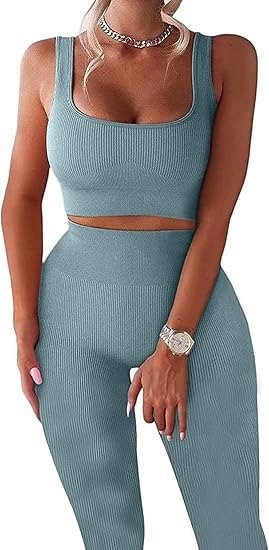 Casual Workout Sets 2 Piece Outfits for Women Ribbed Crop Tank Top High Waist Yoga Leggings Lounge Wear Tracksuit
