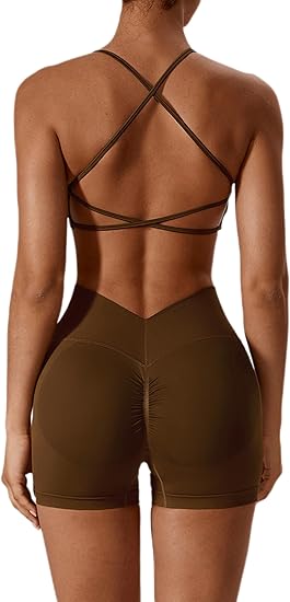 Womens Seamless Workout Sets Cross Back Sports Bra V Back Scrunch Butt High Waist Biker Shorts 2 Piece Gym Sets