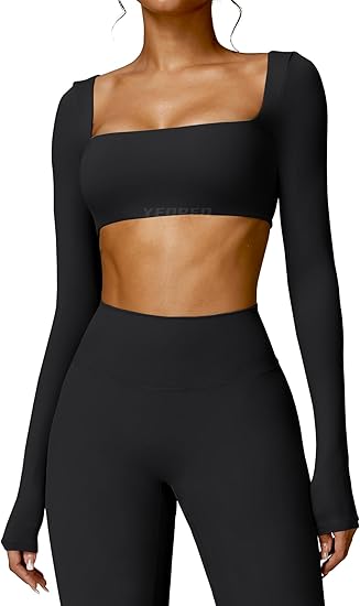 Kyla Women Crop Top Long Sleeve Padded Sports Low Medium Impact Yoga Shirt Workout