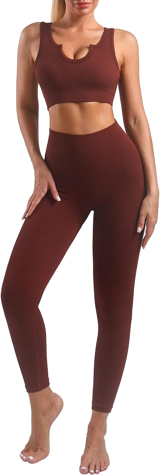 Workout Sets for Women 2 Piece High Waisted Seamless Leggings with Padded Stretchy Sports Bra Sets Gym Clothes