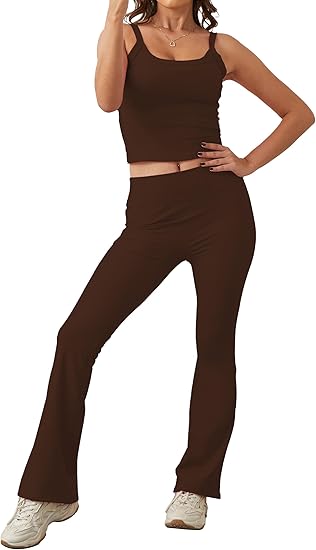 Women's 2 Piece Workout Sets Outfits Sleeveless Tank Top and High Waist Yoga Flare Pants Seamless Matching Gym Set