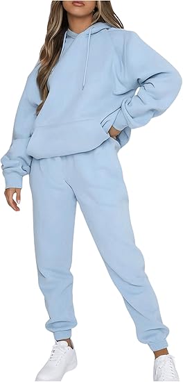 Women's 2 Piece Outfits Drawstring Long Sleeve Hoodies Sweatshirt and Joggers Sweatpants Sweatsuits Set