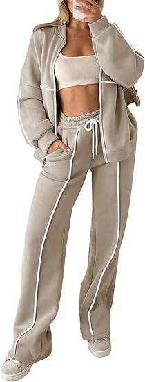 Womens Two Piece Outfits Casual Long Sleeve Tracksuit Lounge Matching Set Zip Up Sweatshirt Jacket Wide Leg Sweatpants