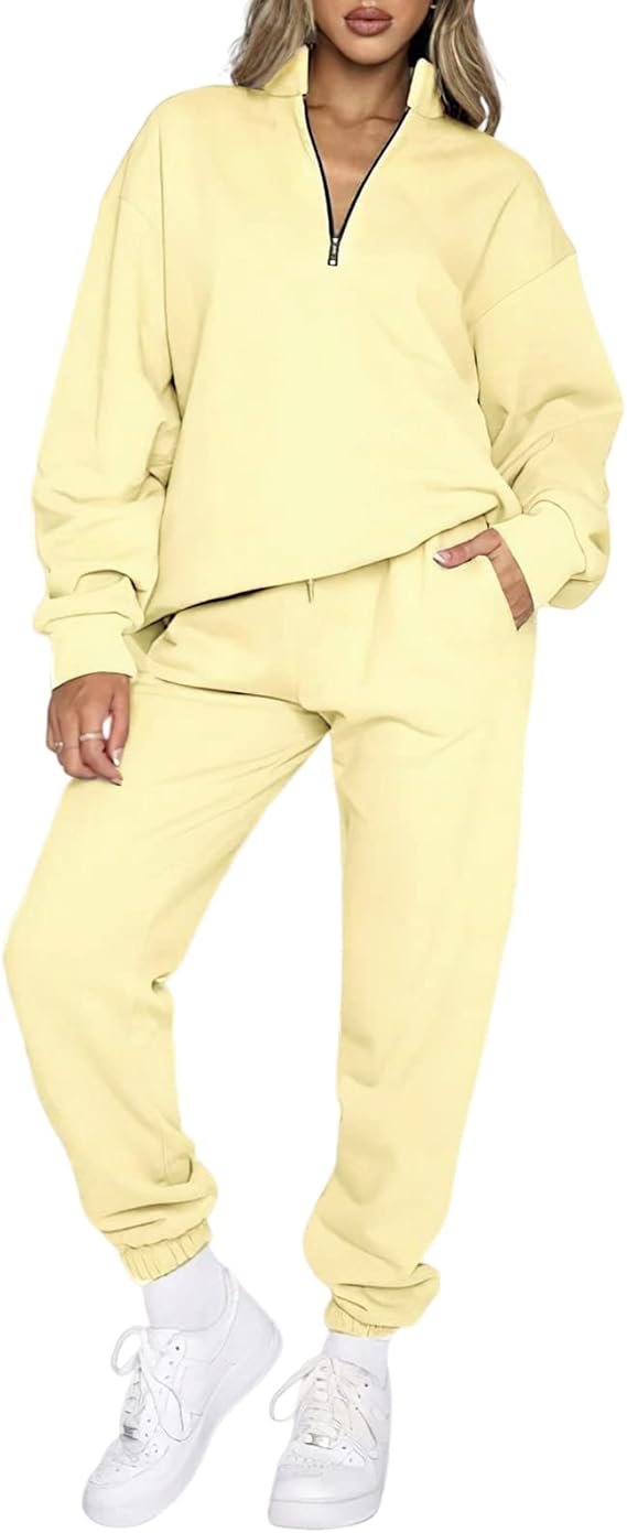 2 Piece Sweatsuit Outfits for Women Jogging Sets Long Sleeve Half Zip Pullover Drawstring Jogger Lounge Tracksuit