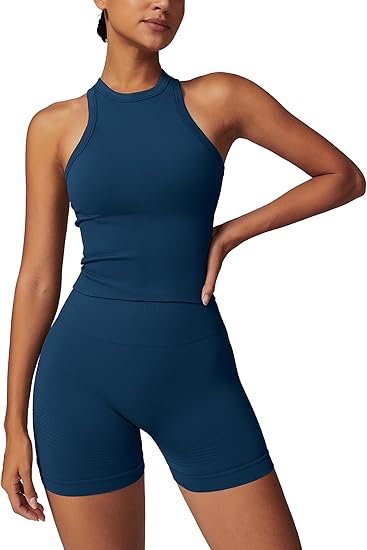 Womens Workout Sets Racer-back Tank Top Matching High Waist Biker Shorts Gym Yoga Jogger Outfits Work Out Clothes