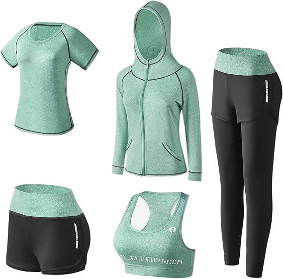 5pcs Workout Outfits for Women Athletic Sets Sport Suits Yoga Gym Fitness Exercise Clothes Jogging Tracksuits