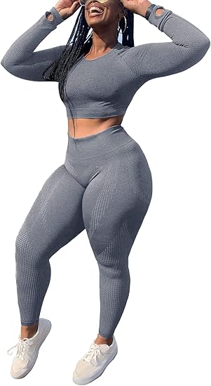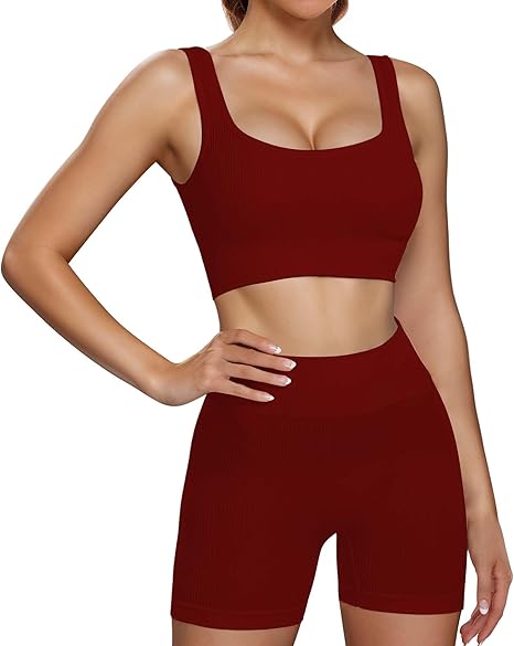 Workout Sets for Women Seamless High Waist Cute Crop Tops Yoga Two Piece Outfits for Women